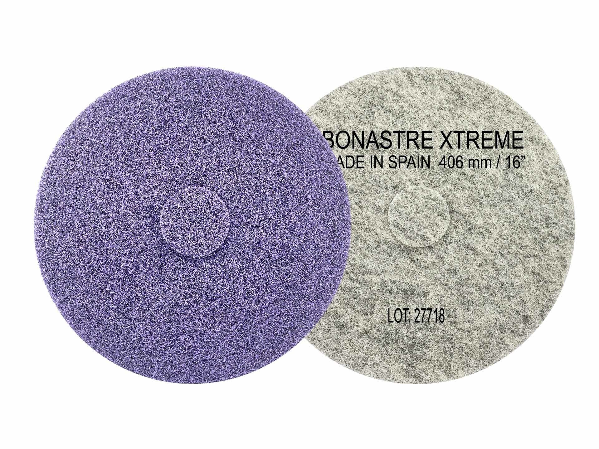 XTREME DUO ideal para ser utilizado en suelos donde el Bonastre Duo normal pueda sufrir un desgaste prematuro debido a las características abrasivas del suelo. Bonastre Duo Xtreme consigue obtener una mayor duración del disco en suelos más abrasivos como mármol blanco, terrazos con mucho tráfico, suelos de hormigón o mosaico hidráulico.